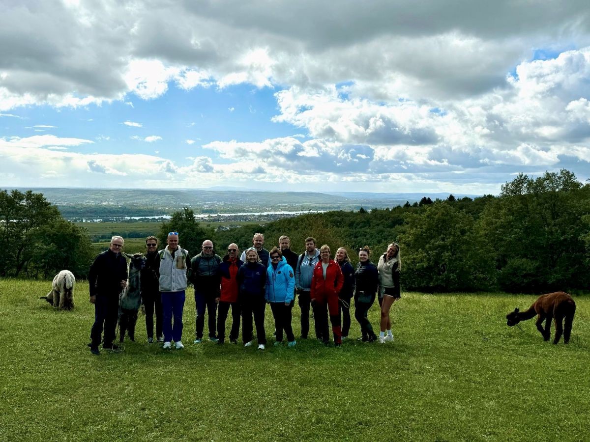 Dette ble feiret sammen med våre dyktige kolleger, først i Frankfurt hos Samson, deretter på Kloster Eberbach i Eltville. Dette ble en fantastisk langhelg fylt med innholdsrike møter med våre tyske kollegaer, god mat og vinsmaking i flotte omgivelser, og ikke minst flott natur kombinert med "alpakkavandring".